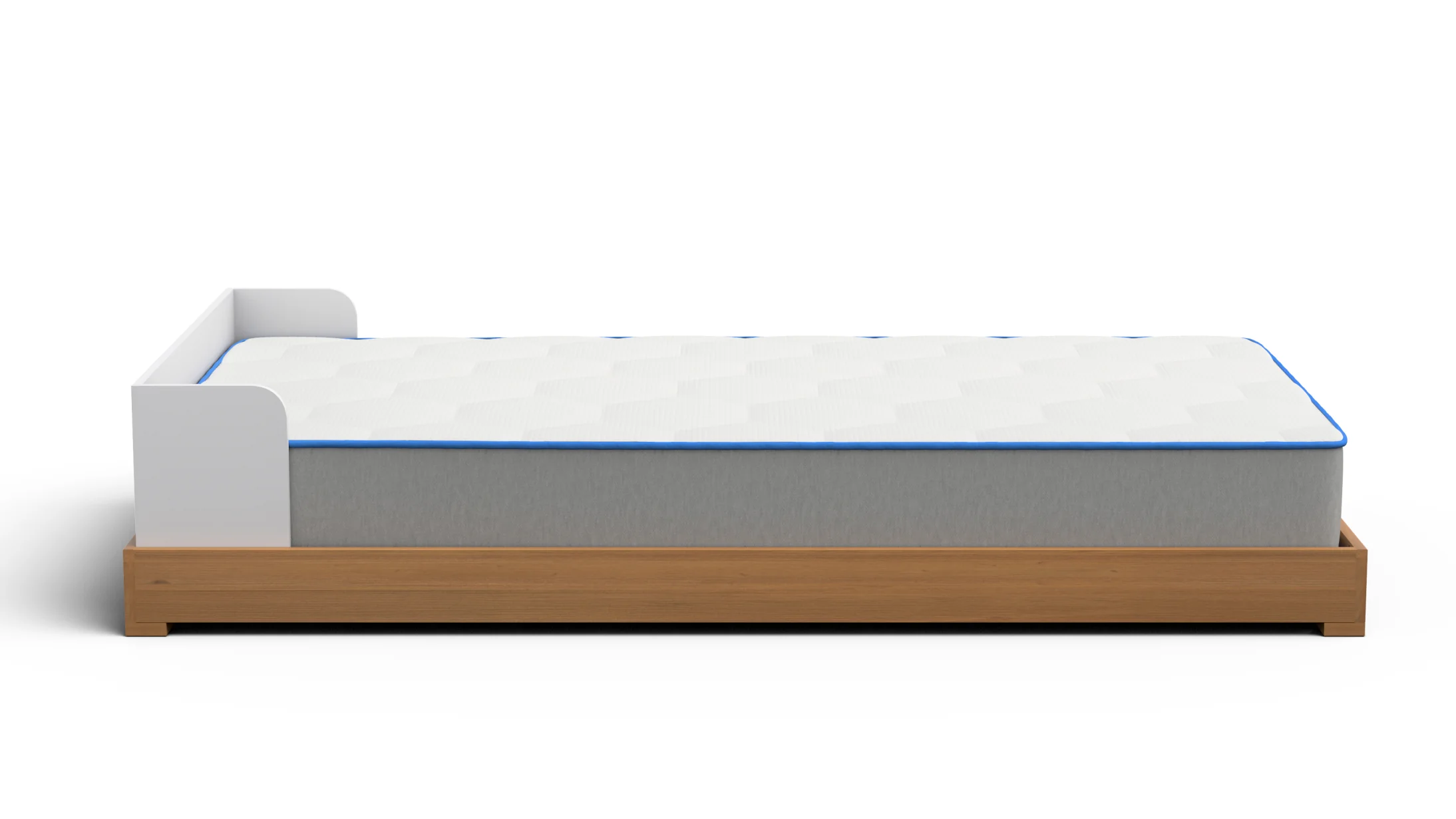 With a sleek look and playful contrasting colors, our Koda Modern Floor Bed offers toddler sleep safety while creating a cozy environment. This bed frame sits low to the ground, making it easy for little ones to climb in and out of bed by themselves and encouraging independence. It’s also crafted with solid pine wood, giving parents peace of mind in its sturdy structure and durability.